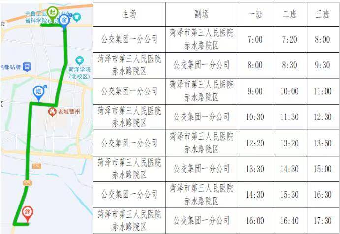赤水路院区地址及交通指引: 1.地址:赤水路1266号(西安路与赤水路交叉口向东200米)。2.交通线路(1)62路专线:由我院八一路院区直达赤水路院区。线路走向:公交集团一分公司—泰山路—解放街—八一路—西安路—赤水路—菏泽市第三人民医院赤水路院区;线路走向图及运营时间表: